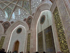 وأفاد مدير مركز الحضارة الإسلامية، فردوس عبد الخاليكوف، بأن المخطوطة موجودة في صالة كبيرة تبلغ مساحتها 1200 متر مربع تحت قبة ارتفاعها 60 مترًا. وتزيّن الثريا الموجودة تحت القبة بـ50 مليون قطعة كريستال من سواروفسكي تزن 50 طنًا. كما جُهزت الصالة بالرخام الوردي الذي يحتوي على 114 مخطوطة فريدة للقرآن الكريم.