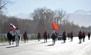 في اليوم الأول من الزيارة، وضع رئيس الجمهورية صادر جاباروف والرئيس الروسي فلاديمير بوتين إكليلًا من الزهور على الشعلة الخالدة في ساحة النصر بمدينة بيشكيك.