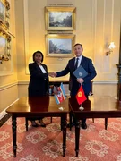وذكرت وزارة الخارجية أن الوثيقة وقّعها سفير الجمهورية القرغيزية لدى المملكة المتحدة لبريطانيا العظمى وأيرلندا الشمالية، أولان جوسوبوف، وسفيرة مملكة إسواتيني لدى بريطانيا، تاندازيل مبويسا (Thandazile Mbuyisa).
