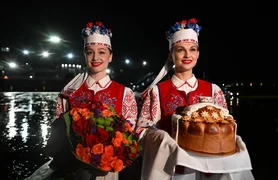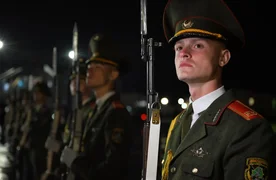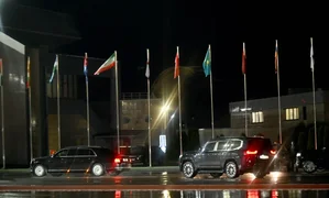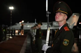 وقد زُيّنت ساحة المطار بأعلام الدول الأعضاء في المجلس الأعلى الاقتصادي الأوراسي، وفُرشت السجادة الحمراء، واصطفّ حرس الشرف لاستقبال الضيف الرسمي.