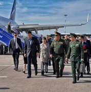 وكان في استقبال الضيف رفيع المستوى في مطار "ماناس" الدولي وزير الدفاع في الجمهورية القرغيزية رسلان موكامبيتوف.