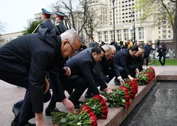 وأفاد المجلس الأعلى أن رئيس البرلمان، إلى جانب رؤساء برلمانات الدول الأعضاء في منظمة معاهدة الأمن الجماعي، شارك في إحياء ذكرى ضحايا الحرب الوطنية العظمى.