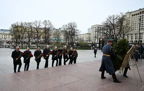 بيشكيك، 20 أبريل 2026 /قابار/ – بدأ مارلين ماماتالييف، رئيس المجلس الأعلى القرغيزي زيارته إلى روسيا بوضع إكليل من الزهور عند نصب الجندي المجهول قرب جدار الكرملين في موسكو.