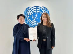 وفي اليوم نفسه، قدّمت نورجان شايلدابيكوفا أوراق اعتمادها الموجّهة إلى الأمين العام للأمم المتحدة، أنطونيو غوتيريش، والتي تسلّمتها نائبتُه المديرةُ العامة لمكتب الأمم المتحدة في فيينا، والمديرةُ التنفيذية لمكتب الأمم المتحدة المعني بالمخدرات والجريمة، غادة والي.