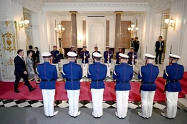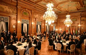 وعقب ذلك، مرّ الرئيس صادر جاباروف ورئيسة الوزراء اليابانية ساناي تاكايتشي على السجادة الحمراء بمحاذاة سرية حرس الشرف، قبل أن يلتقطا صورة تذكارية مشتركة، ثم توجها إلى القاعة للمشاركة في مأدبة العشاء الرسمية التي أُقيمت على شرف قادة دول آسيا الوسطى.