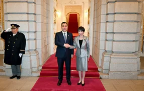 وكان في استقبال رئيس الدولة رئيسة وزراء اليابان ساناي تاكايتشي.