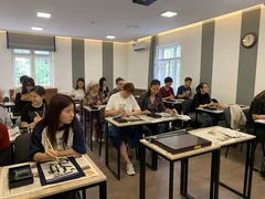يقوم بتقديم الدروس موظفو قسم التبادل المتبادل في مركز التنمية البشرية القرغيزي-الياباني، وهم مواطنون من الجمهورية القرغيزية يمتلكون معرفة عميقة ومهارات عملية في الثقافة اليابانية. ويشارك أيضاً في تقديم الدروس أعضاء نادي الخط الياباني، وبعض موظفي المركز، ومتطوعون يابانيون. المشاركة في الدروس مدفوعة الأجر وتتطلب تسجيلاً مسبقاً.