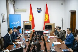 التقى وزير الصحة القرغيزي، إركين تشيتشيباييف، اليوم في بيشكيك بممثل منظمة الأمم المتحدة للطفولة (يونيسف)، سامان تافا.